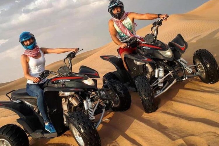 Quad bikes offer a more exposed and physically engaging ride. You control balance, steering, and throttle directly. Every dune feels more intense because your body absorbs more movement.