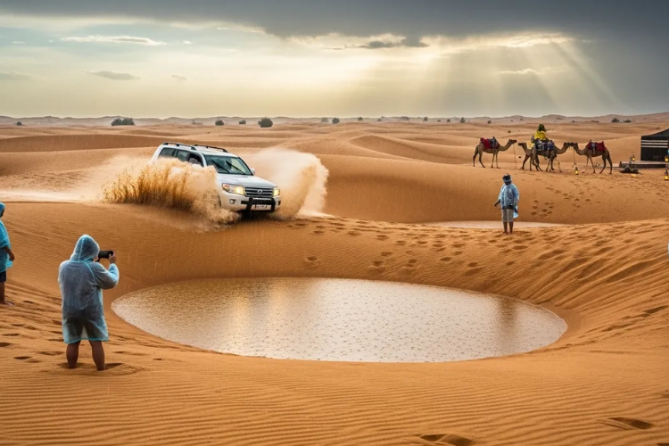Desert safaris involve outdoor activities such as dune bashing, camel rides, sandboarding, and cultural entertainment at desert camps. These activities take place in open desert landscapes where weather conditions can strongly affect comfort.